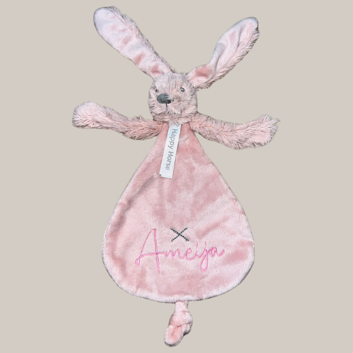 Schattige knuffel van Happy Horse met "eigen naam baby" geborduurd. Gemaakt van 100% katoen, deze knuffel is leuk om kado te geven.